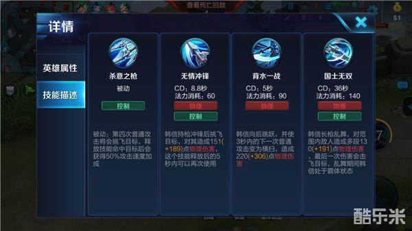 解析:第四次普通攻击可以击飞敌人,给韩信提供了一个完美的控制效果。并且技能命中目标后提供高额的攻速加成,使韩信的输出能力更加强大。