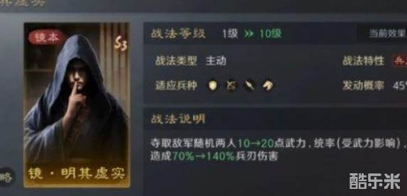 三国谋定天下镜像战法自选本2选哪个,玩家只需选择合适的镜像战法就能大幅度提高战斗力,其中自选本2首推镜明其虚实,下面酷乐米小编为大家详细介绍一下,有需要的可以参考一下。