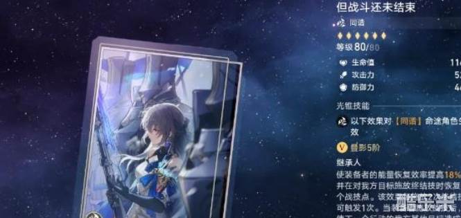 战斗还未结束的光锥,是同谐角色武器中泛用性最广的。它能够用来进行战技点的节省,除了耗点大户的布洛妮娅,其他的同谐角色也能够使用。建议玩家先把布洛妮娅拉到1命,再兑换这把光锥,能有效提升配队阵容的容错。杨叔的专属光锥是以世界之名,虽然面板数值是比较高的,但和拉不开太大的距离。在dot队中,比较好用的还是晚安与睡颜。因此它只适合于搭配杨叔,有多余资源可以换。杰帕德的专属光锥是制胜的瞬间,拥有很高的防御力白值。