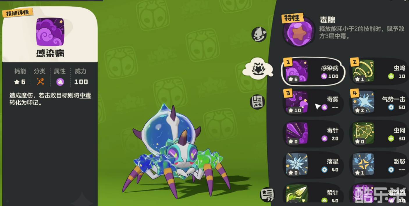 洛克王国世界毒王技能怎么搭配?合理的技能组合能够最大化它的优势,让它在不同的战斗环境下都能发挥出色的控制与消耗能力。下面和酷乐米小编一起来看看吧