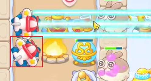 1、开局后左侧有一个绿色的火罐炮塔,右侧有一个香水炮塔。