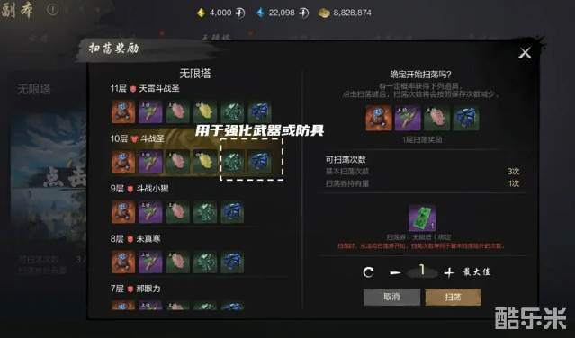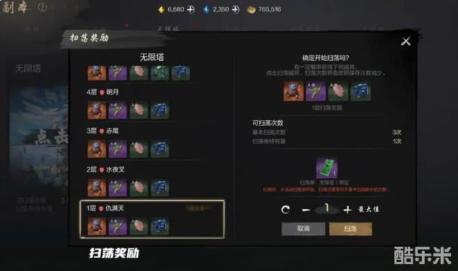 在通关的过程中,最让人兴奋的就是每一层带来的奖励了。随着层数的提升,奖励也会逐渐升级。在1到19层,你能获得丰富的灵药、秘诀,甚至是珍贵的寒玉碎片,这些都是强化武功和装备的必备材料,帮你迅速提升实力。每一次击败BOSS,都会让你的背包变得越来越充实,而你的人物也会随着这些奖励变得更强大。