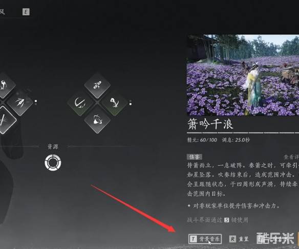 箫吟千浪的音乐在多人模式当中会非常吵,很多玩家不清楚要怎么关闭,玩家们可以在箫吟千浪的奇术界面当中点击背景音乐关闭就可以了,接下来就由酷乐米小编给大家带来了详细的《燕云十六声》箫吟千浪音乐关闭方法,希望这篇文章可以帮到大家!