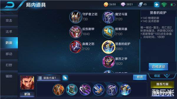 六神装:红莲斗篷+抵抗之靴+暗影战斧+破军+魔女斗篷+贤者的庇护
