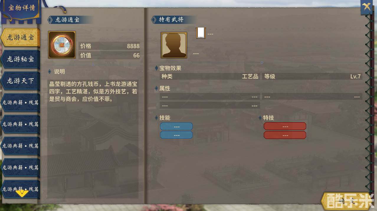 龙游通宝:探索雪山神秘武将,不通关也可获取,可用于交换金钱;
