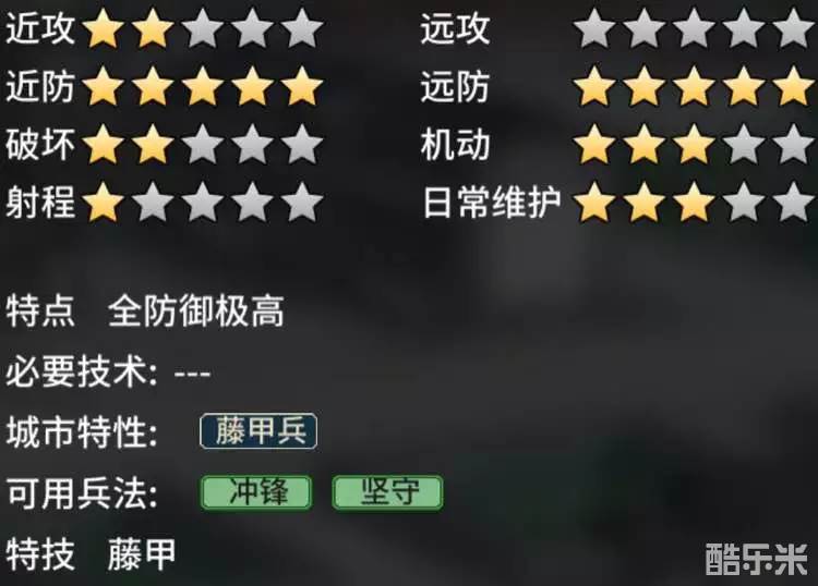 使用:东方小肉盾,虽然是步兵但不怕弓箭不怕铁骑,当然攻击力一般也不能把对方一击致命。推荐和丹阳兵组合成全步兵军团,野战和攻城都没有短板。