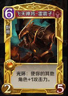 雷震子是目前火系唯一一张带光环的英雄角色牌,光环效果还是加攻,非常适合火系的战术体系。