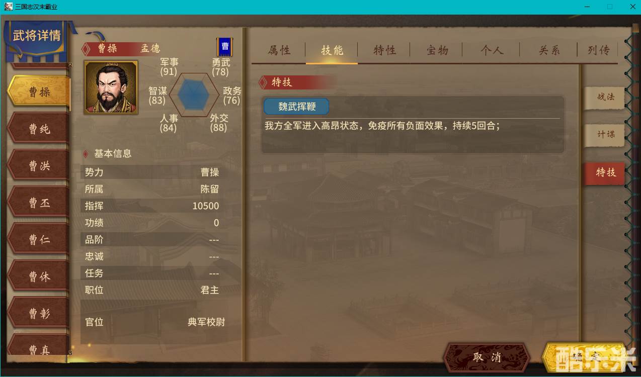 在回归传统策略类的基础上深度刻画了三国各城市之间的地域差异以及每个武将自身能力和特性的异同,而在战斗方面突出结合天时地利人和的调配来进行作战的魅力。接下来就由酷乐米小编给大家带来了详细的《汉末霸业》名将特技一览!