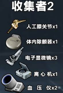 收集者3:5个模拟温度计,3个军用望远镜,3个生化培养箱,2个心脏支架,在机密绝密中带出2个仪典匕首。