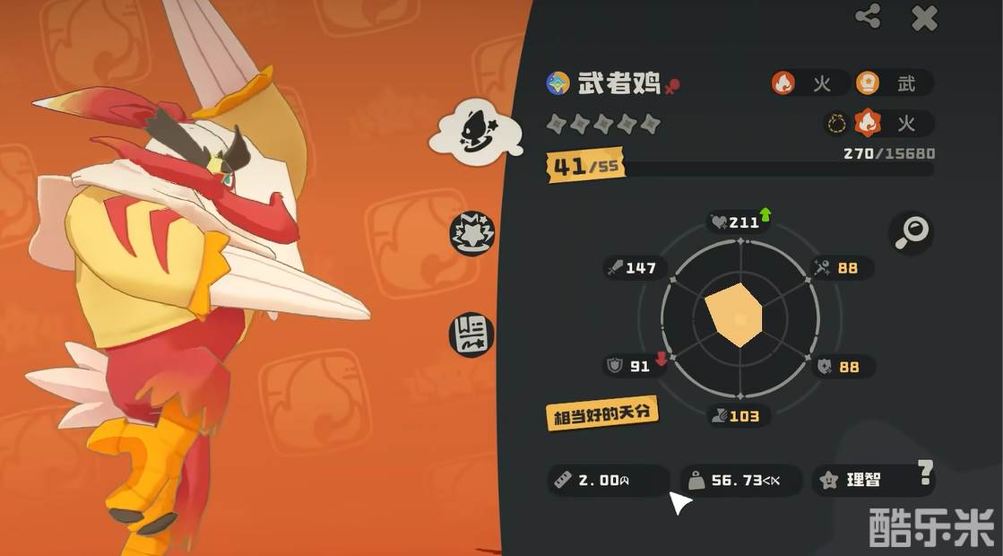 当然在获取之前,各位对于该精灵的了解其实仍旧有限。其实这是一只火属性的精灵,生命值的话高达200多。另外攻击力也很夸张,高达147。然后还有其它的防御属性,它的天分相当之好,性格则令人感到讶异,是一个很有理性的精灵。