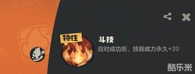 它的特性叫做斗技,当你成功应对敌人的攻击时,就可以永久的提升20点的技能威力。所以这是个很适合用来反打的精灵,由此可见可以在使用坦克精灵时,马上的选择切换至它。这样就能够适时的发起反攻,并对敌人造成不可恢复的伤害。