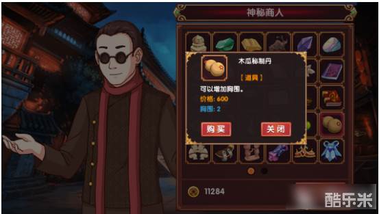每年年末就会出现神秘商人,大约是十月或者十一月就会出现对话,一定记得选择看看。每次神秘商人里的东西重新刷出一些新的东西,也会随机出现木瓜秘制丹(加两点胸围值),每年逛一次神秘商人里的店也是不错的选择,还可以买一些稀奇的东西在跟NPC聊天时触发送礼事件增加好感度。