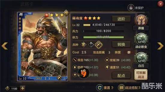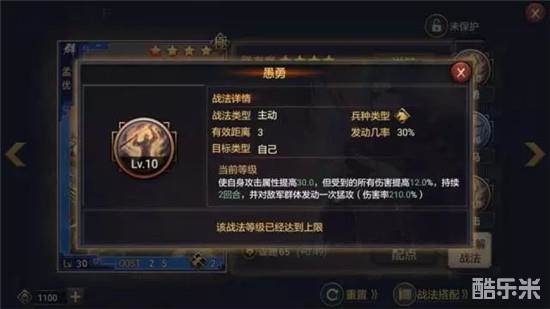 最后我们看看蛮兵这个兵种,提升伤害10%,受到混乱和暴走时所受伤害提升15%。前者补足了它部分输出能力,后者则让他在面对强控队伍时更加脆弱,不过这种四星武将在对上浑水妖术这些老牌强控时本来就处于劣势,这15%也不怎么影响大局。而50%的行军速度在对战时无法体现,但在赶路时能大大增加队伍机动性。