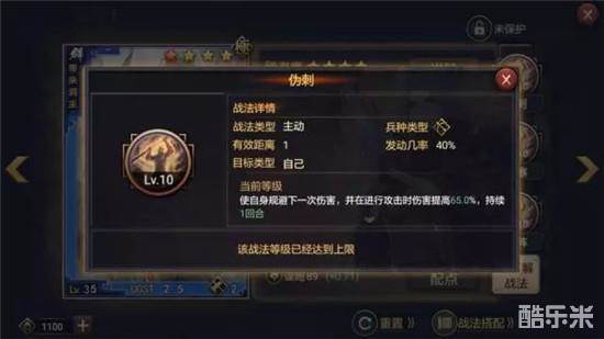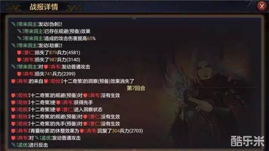 依旧是攻守兼备的技能,不过带来洞主的这个技能非常适合打输出位,65%的伤害加成非常之高,还附带一次规避,如果不是几率只有40%,这是个能媲美夏侯渊的主动。