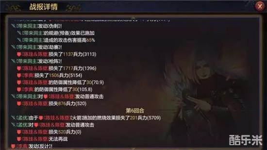 最后说一下关于南蛮三人组的组队问题。这三人没有组合,但是蛮兵的特性让他们能成为一支速度比弓兵不差的步兵队伍,因此三人同队还是可行的。如果拆开使用的话优先考虑带来洞主,作为一个群步或群弓的副输出位还是绰绰有余的,就算配上雄兵等高级战法也不会埋没了它们。下面介绍一组蛮兵队伍的战法搭配。