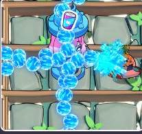 使用高压水枪发射大量子弹攻击敌人:弹道为十字型。