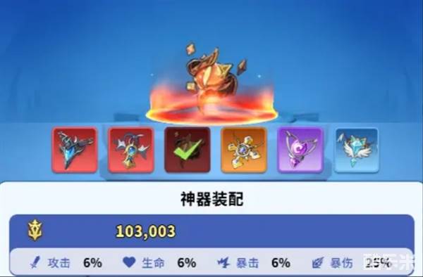 2.每个队伍只能上阵一个神器,神器的基础属性会加成到全体上阵英雄,神器属性可以叠加,拥有越多的神器加成越高;