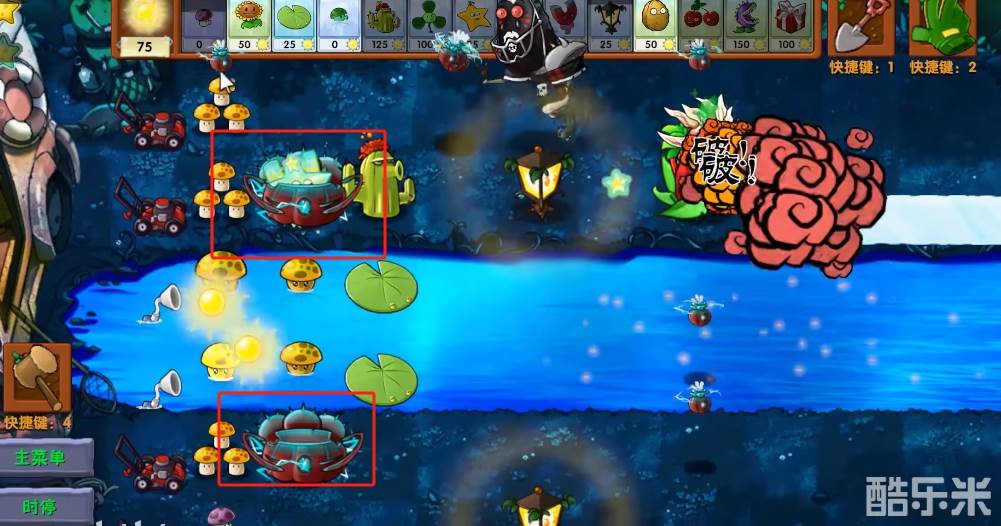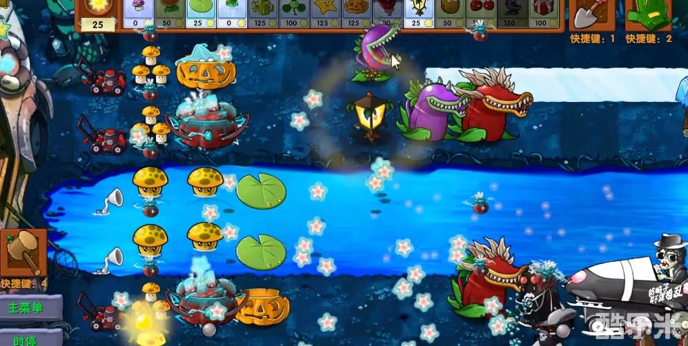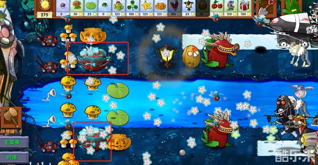 究极激光南瓜头顶上面会闪烁着小闪电,然后开始发射星星攻击僵尸。