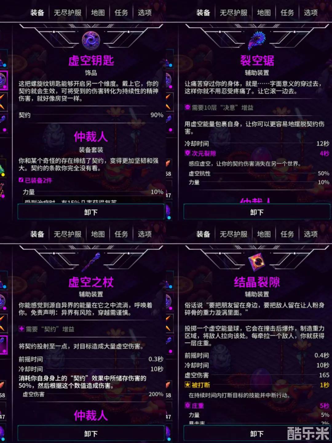 在崩溃大陆2游戏中,虚空仲裁者套装是通过完成特定的任务和支线任务来获得的。装备虚空仲裁者套装后,玩家将获得显著的能力属性提升,而且该套装还比较适合手残党使用,下面和酷乐米小编一起来看看吧
