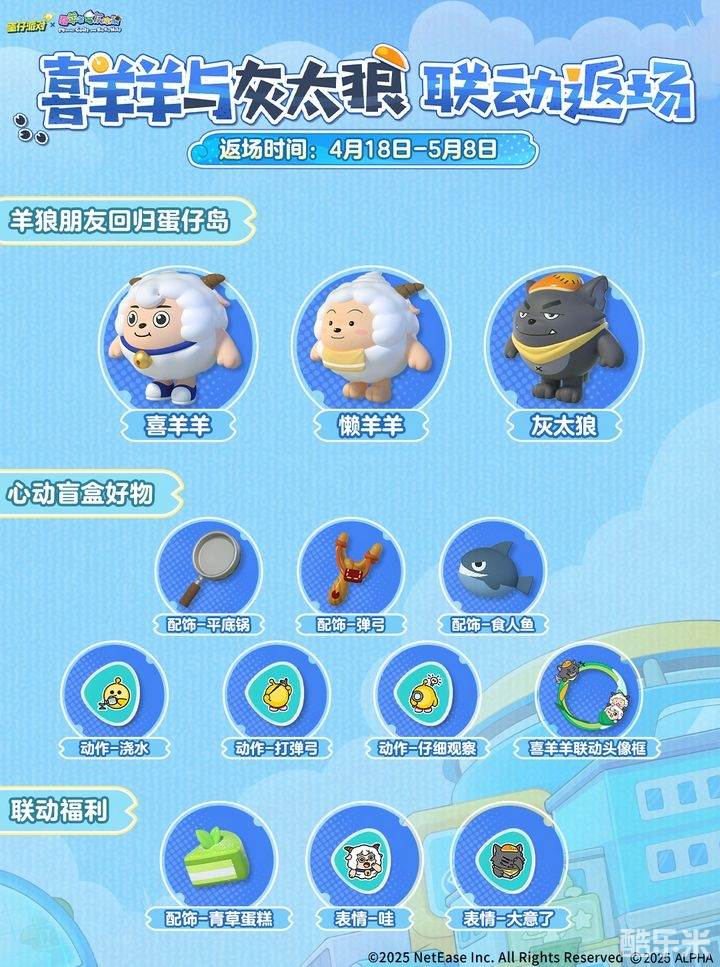 喜羊羊、懒羊羊和灰太狼重返蛋仔岛,快和萌萌羊狼朋友们再续欢乐前缘吧!