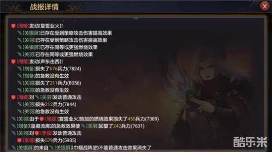 最后说一下关羽的组队和战法。任意蜀步都可以把前锋替换成关羽,这样的好处是组队难度降低,队伍更平民化,效果上来说虽然关羽无法给队伍提供各种加成也无法有出色的输出,但自身的硬度足够,能很好的降低战损。这里提供我自己的搭配供大家参考大营刘备【白刃/落雷】+【方圆】,白刃和方圆都是步兵专属辅助技能没什么可说的,落雷可以提供一定输出并且是4星技能节能环保;中军关银屏【雄兵破敌/一骑当千】+【折戟强攻/枪阵/劫寨】,作为队伍唯一的输出,请把你最好的输出技能给她装上,相信我她不会辜负你的期待;前锋关羽【战必断金】+【步步为营/斩铁】,斩铁落雷迷阵破魂等都是不错的控制技能,带上能增加队伍的控制和生存能力,值得考虑。