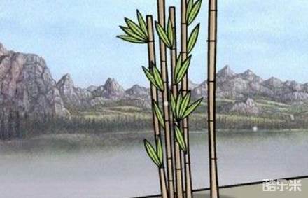 3.用弯刀砍断竹子,得到木棍。