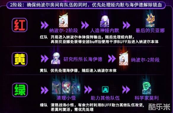 红队:输出纳波尔本体再去打【娅内默】,最后再去找【贝亚娜】拿团BUFF,使用干涉BUF进入纳波尔本体