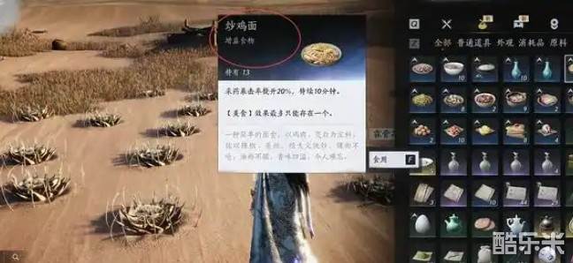我们下去之后,在采集之前吃一份“炒鸡面”,它可以在10分钟内使采药暴击率上升20%,吃完面我们采集就好了