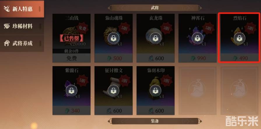 在游戏中也为玩家提供了多种获取烈焰石的途径,其中最为便捷的方式就是购买,建议是先在优惠商店里买更划算,玩家可以相对轻松地找到枭之歌烈焰石并进行购买操作,除了新人特惠商店外,在珍惜材料的相关页面当中也有这个道具出售,不过需要注意的是,在这个栏目里购买烈焰石的价格更高,980灵犀玉才能买到一个。