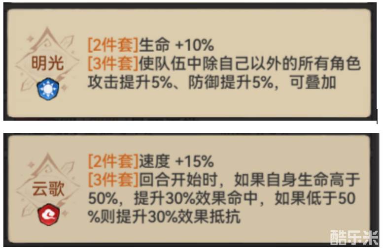 推荐的阵容为:【五行剑】-主C、元润-主T、五行禅-副T、唐蝶衣-辅助、杨安-功能位,我们只需要抽取一个唐蝶衣本体,即可组成这一套丝滑过渡阵容(选择理由在此不赘述)。其中元润、五行禅、杨安携带【明光】三件套给队伍提供增益,唐蝶衣携带【云歌】三件套,为队友取得先机!