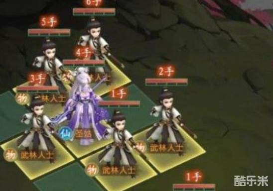 1、温慧:放在1号位,温慧普攻对纵列造成伤害,普攻命中时,21%概率造成连击,能快速击败左侧武林人士。