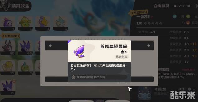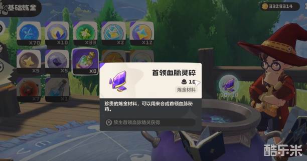 在完成收集之后,玩家就可以来到炼金台,然后将所有的零碎放在这边,在经过合成之后就可以获得血脉药剂。这一瓶血脉药剂就成为了关键,可以让精灵迅速的完成超进化。