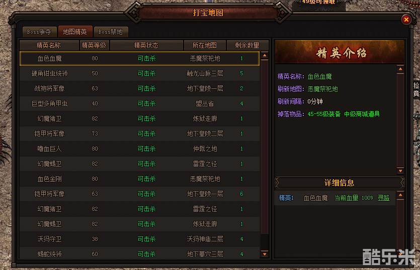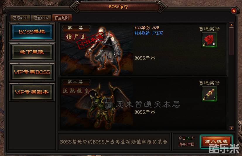 专为来不及抢夺BOSS的玩家设计的打宝地图,使用禁地令牌即可进入挑战,BOSS产出同野图BOSS,但难度大大降低。