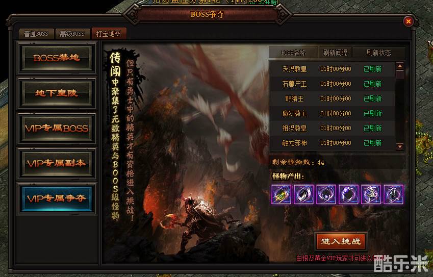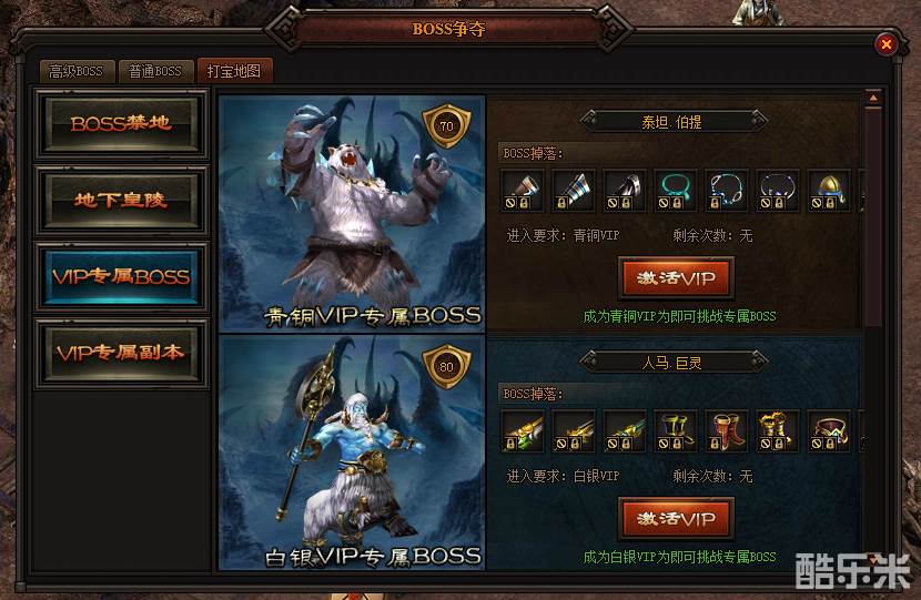 VIP用户可以进入专属的BOSS地图击杀BOSS获得奖励。