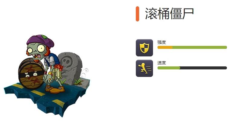 特点:用滚桶压扁植物,被消灭后桶中释放出小鬼僵尸 弱点:滚筒压到地刺就被扎破了 滚桶僵尸是一家地下俱乐部的资深会员,不过太小众你肯定没听说过。小秘密,他的左手比右手长了那么一点。