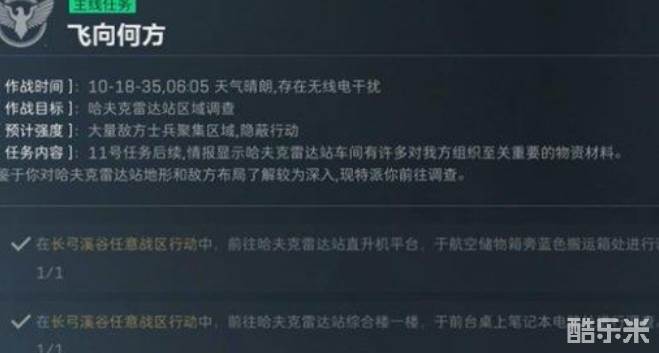 三角洲行动研发部门飞向何方任务需要玩家们前往长弓溪谷的哈夫克雷达站,在指定的点位处进行调查即可,由于很多伙伴们不知道怎么过,下面酷乐米小编就为大家带来具体的攻略,有需要的自行查看吧。