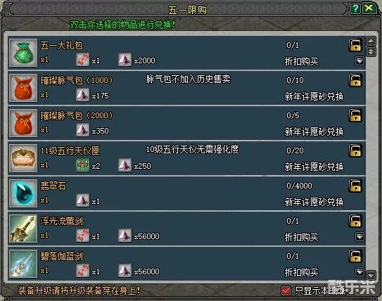 活动介绍:活动期间,大侠在“游戏活动大使”处的限购商店可购买各种超值道具,均为绑定。