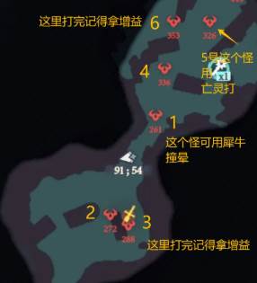 7、路上血瓶给亡灵,清怪按下图顺序。