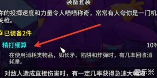 精打细算50%几率不消耗道具,其次就是本身套装属性。