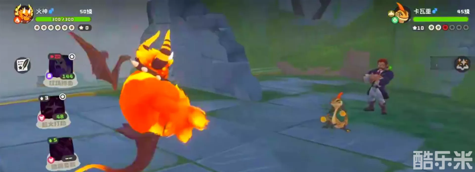 击败两个精灵后进入到二阶段,打法和上述区别不大,但是精灵的属性则拥有双重特性。开局的花影羚羊双系能力加身后,这里需要注意花影羚羊在受伤后会触发限定技能隐藏条款,可以让双方的技能组调换。但它本体的血量实际提升不大,因此仍然可以使用火神迅速击败。而卡瓦重虽然拥有地系可以克制火神,但自身又拥有草系被火神克制,所以相互抵消还是能用火神来爆伤击败。之后尼尔森会额外召唤一名地属性的阿米樱。此时让火神下场,可以使用武系的瞌睡王来反向克制,阿米樱会使用地震但由于受到克制的关系,因此伤害会大大降低。之后二连击就能击败阿米樱赢得胜利。