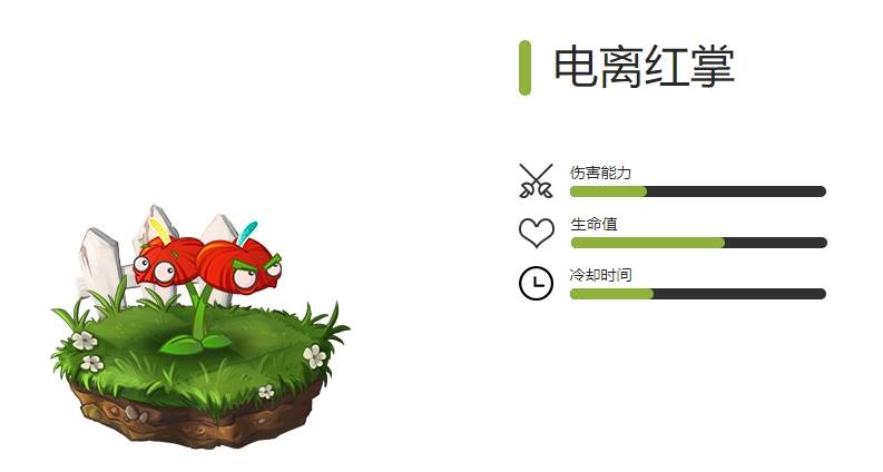 电离红掌能吸收闪电并攻击前方僵尸。