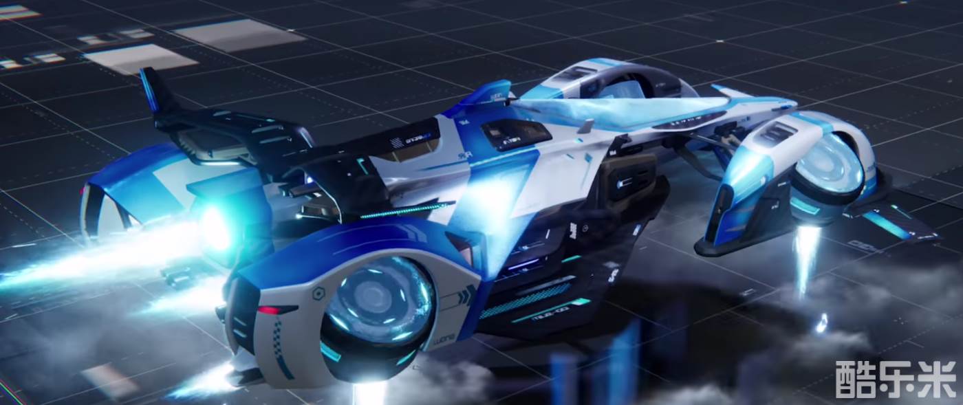 「霜华·幻影」是启明星重工推出的首款可切换地面及悬浮状态的双人载具。在极寒之境,流线型车身流淌着幽蓝寒光,仿佛极光在冰原上跃动。车轮设计巧妙,能够完成复杂变形,一键切换至悬浮状态,底部蓝光缓缓闪烁,如同冰霜之下蕴藏的能量。可以在冰原和雪峰之间自由穿梭!