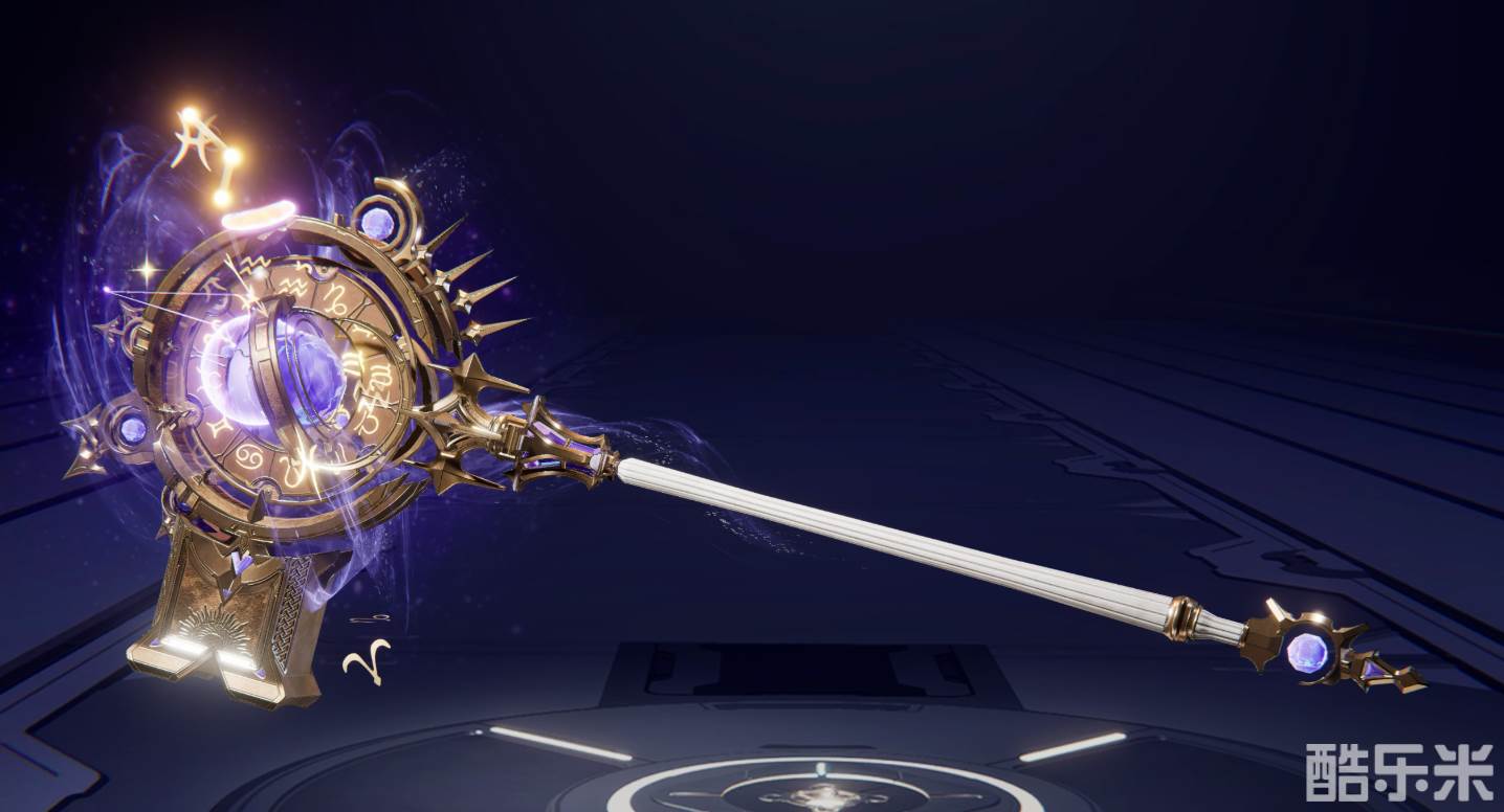 新武器皮肤「凝时·寰宇卜者」将12个星座的神秘力量凝聚于一体,每一寸纹路都闪烁着星辰的光芒。锤身上镶嵌着各个星座的符号,宛如夜空中璀璨的星图。