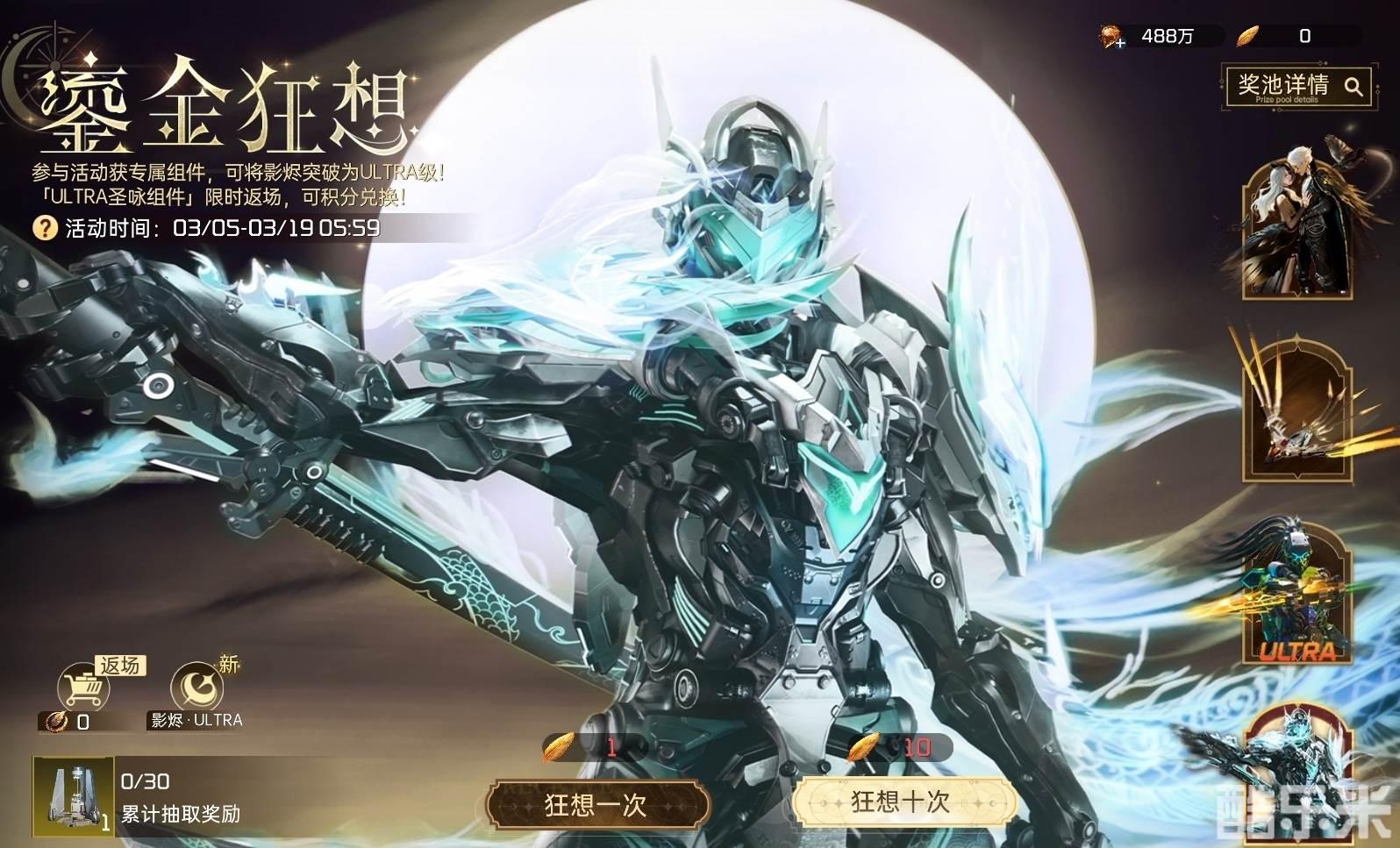 战甲「影烬」ULTRA突破,能力全新升级,参与本奖池可获得「ULTRA影烬组件」并对其进行突破。此外,「ULTRA圣咏组件」也将在鎏金狂想商店限时返场。活动时间:3月5日-3月19日05:59