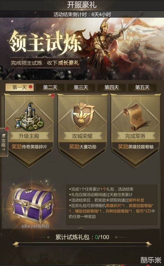 试炼任务是随着时间慢慢开放的,任务非常全面,只要大人按照“领主试炼”的任务目标培养发展,便可以在新游戏中打下坚实基础,获得先发优势了。