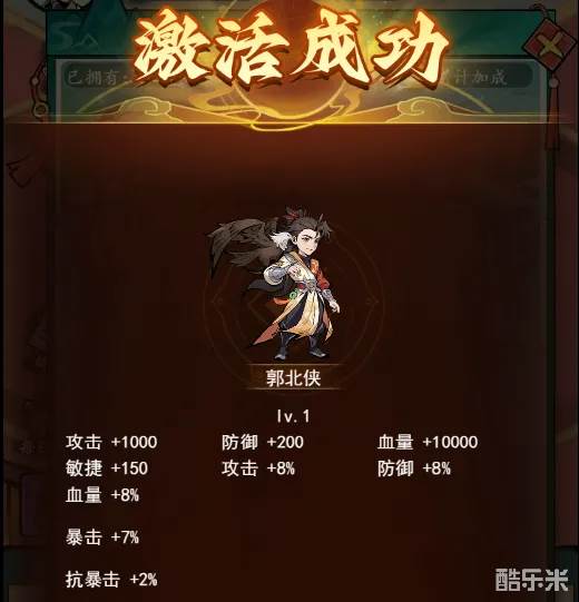 根据激活不同品质的侠客,可以获得不同的额外属性加成。少侠点击右上角【详】按钮,即可查看当前通过激活不同侠客形象带来的累计属性加成。