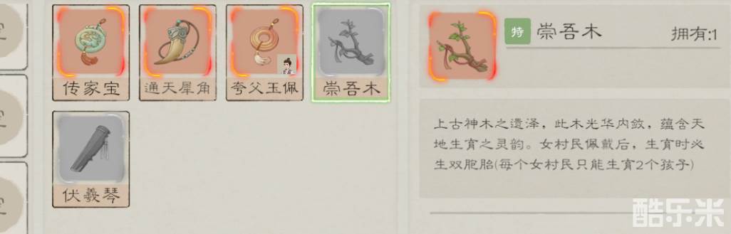 现实时间,每天把伏羲琴给年轻的带有技能的男村民带上,崇吾木给年轻的女居民带上,等他俩生了娃,一次就新增两个带技能的村民了,带技能的村民用起来确实好一些,聊胜于无。
