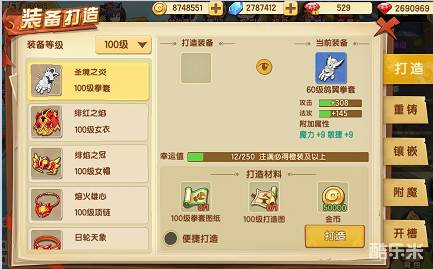2、装备可镶嵌宝石等级根据装备等级提高而提高