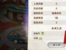 3、接着在家族工作页面,点击下方的领取即可获取家族工资;