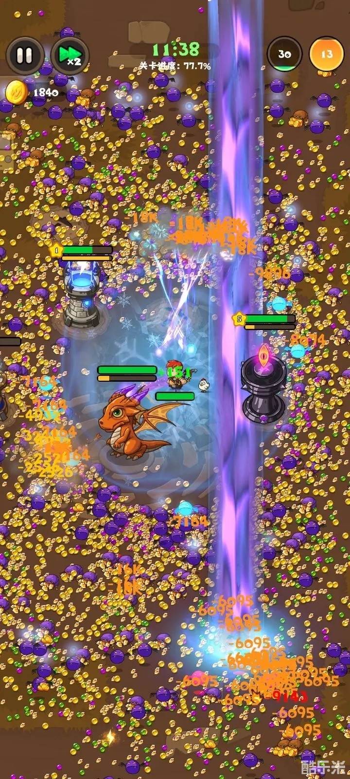 成型后站着可以罩住塔和龙,然后挂机,boss时动一动